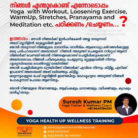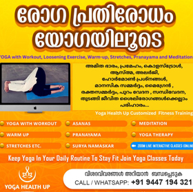 ഒരു Mobile Phone/Desktop/Laptop / നെറ്റ് കണക്ഷൻ, ഒരിത്തിരി സ്ഥലം, ദിവസവും മാറ്റി വെയ്ക്കാൻ ഒരു മണിക്കൂറുമുണ്ടെങ്കിൽ ലൈവായി നേരിട്ട് കണ്ട് കൊണ്ട് യോഗ പരിശീലിക്കാം
